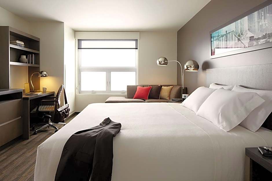 This suite offers two separate bedrooms, each with a king bed and private bathroom. The room is also equipped with a sofa bed.There is a full kitchen and a work desk with ergonomic chair.
