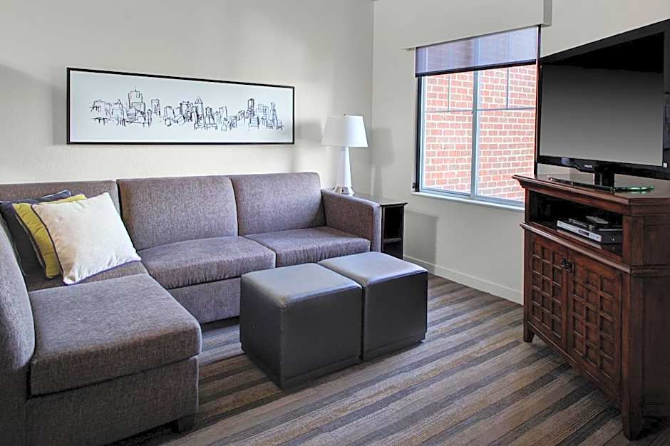 This suite provides a separate bedroom with a king bed as well as a sofa bed in the living area. There is a full kitchen and and a work desk with ergonomic chair. Free WiFi and a flat-screen TV are also provided.